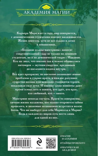 Marie's career is on the rise, the world is being conquered, and contact with the demonic students is being established. She has a fiancé, although not everything is smooth and easy in her relationship. "Maestrina's Big Plans" deal a crushing blow not only to the lazy students, but also to the demonic creature from the Upside Down. Who knew that this is how you could acquire a pet—terrifying on the outside, loyal to the last breath on the inside? Everything is going well, but suddenly new problems and old enemies arise, and every sentient being, willingly or unwillingly, becomes a hero, demonstrating strength of spirit. And it is precisely these moments that give time to reflect and understand who is friend, who is foe, who is loved, and who is nobody. Maestrina has no time to be bored. Enemies have been defeated, her personal life is in order, but secrets of the past will be revealed, and familiar strangers will meet by the will of the gods. What will Mariella and Maria choose for themselves? After all, in each world there is room for only one of them.