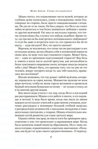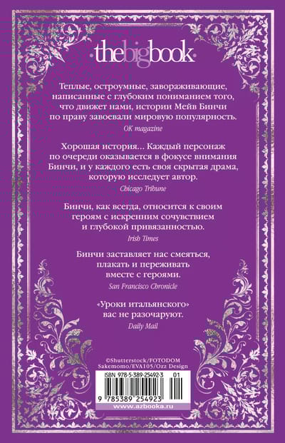 Irish writer and journalist Maeve Binchy (1940–2012) is well known not only in her homeland, but also around the world. Her books have consistently become bestsellers and have repeatedly received prestigious international awards. Real fame came to her after the release of her first novel, Light a Candle (1982). The novel Italian Lessons is written with humor and sincere love for the characters. An unusual story about the most ordinary people.