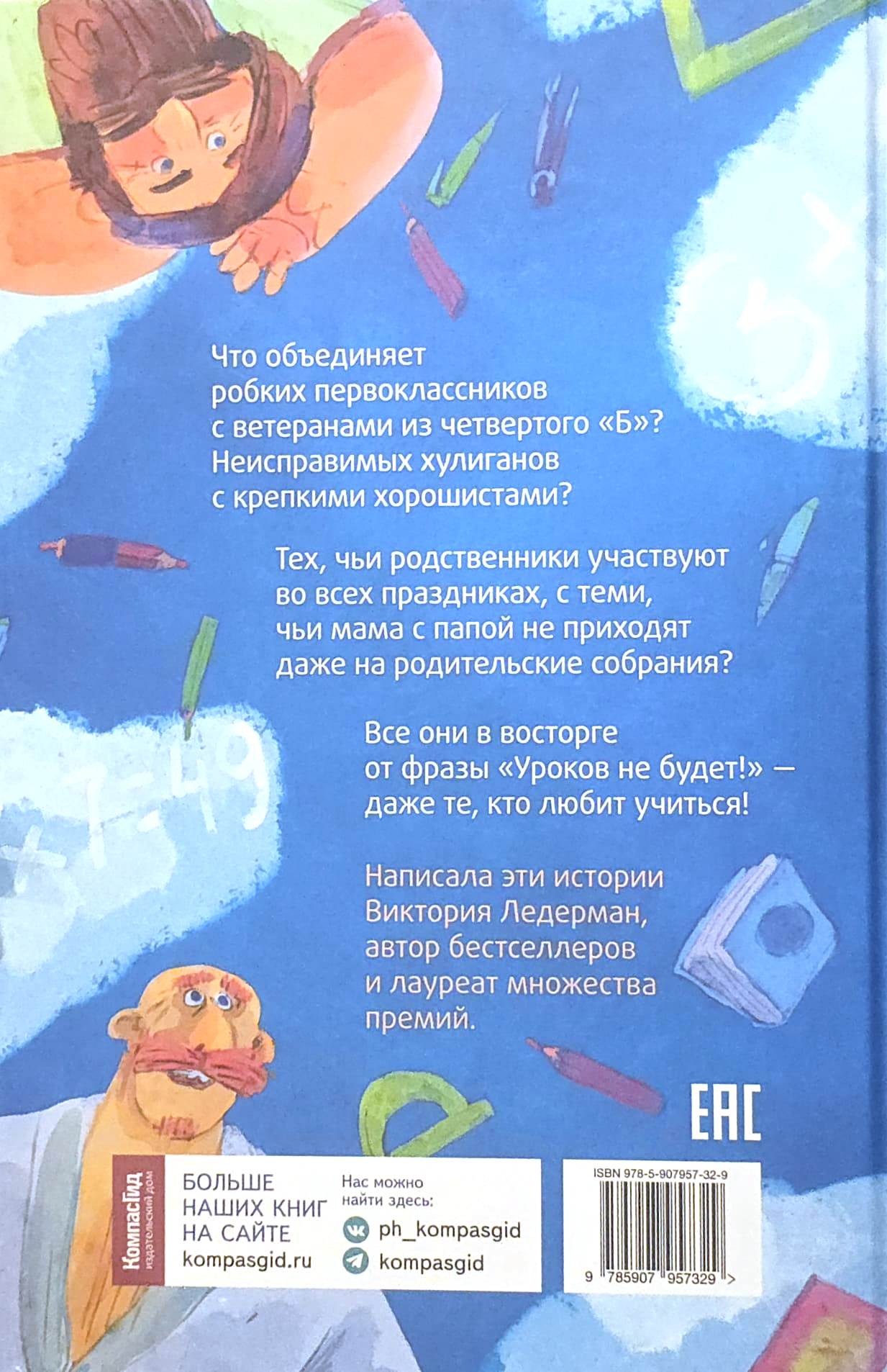 The stories from Victoria Lederman's collection "No Lessons!" are dedicated to elementary school students, from first to fourth grade. These children still have much to learn: patience and discipline, self-advocacy, and diplomacy. And unpleasant surprises are already raining down on them! For example, their beloved French teacher—the one who never assigns or checks anything—is replaced by a strict and demanding one. Or the disgusting Miron Solomatin gives you the offensive nickname "Plyushka" (Curly Dough)—just because you didn't let him cheat. Do you even want to go to school when this happens? You just want to scream at the top of your lungs: "There will be no lessons!"