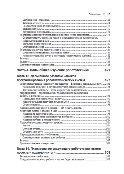 This book focuses on building an intelligent robot and developing code for its behavioral scenarios. Widely available components such as sensors, motors, cameras, microphones, speakers, LEDs, and a Raspberry Pi microcomputer are used to build the robot. A number of specialized topics such as computer vision and voice control are covered. The reader will also learn about specialized robotics communities and the future of robotics.