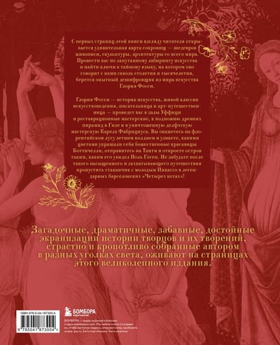 - Whose face does the Great Sphinx at Giza bear? - How did Walt Disney draw inspiration from medieval art to create his iconic cartoons? - What prompted Munch to leave a poignant message on the painting "The Scream" that made him famous: "Only a madman could paint such a thing!"? In witty sketches, Gloria Fossey, with her broad scientific and cultural erudition and great affection for the characters in her stories, sketches a large-scale picture or, better said, a map of her art historical research, while demonstrating a remarkable gift for storytelling. The stories of the masterpieces are born before your eyes - just one small detail that most museum visitors do not even notice - and give rise to others in a whimsical chain of associations. Magnificent illustrations allow you to examine famous works of art in the smallest detail, drawing the reader into the mysterious labyrinth called "art". This book is a real Ariadne's thread for those who are just beginning to learn how to analyze art. Using examples of individual works, the author demonstrates how the same image can be interpreted differently depending on sociopolitical and cultural contexts. The edition in an elegant dust cover will be a great gift for all connoisseurs of quality and unboring art books. Gloria Fossey is an art historian, living classic of art history, writer and art traveler, author of the official guide to the Uffizi Gallery.