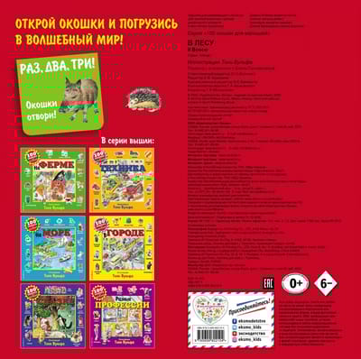This book will surely become one of your baby's favorites - after all, children aged 2 - 3 years love to manipulate objects, and a book with windows is a perfect object for their little fingers. Every time a baby opens a window in a book with his tiny hand, he becomes smarter, because he makes a purposeful conscious movement with his fingers, and the developing impulse at this moment goes to the brain. And if the baby at the same time looks at the wonderful illustrations by Tony Wolfe, if he and his mother or grandmother travel through the pages of the book, get acquainted with the mysteries of the forest and learn what trees grow there, what animals live there and what happens in the forest in winter and summer, it becomes clear that every child should have such a book.