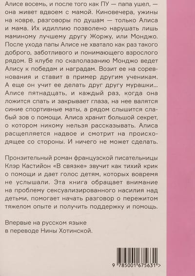 French writer Claire Castillon's poignant novel, "Bound," sounds like a silent cry for help and gives a voice to children who were not heard in time. This book draws attention to the problem of sexualized violence against children, helps to start a conversation about the difficult experiences and to receive support and help.
