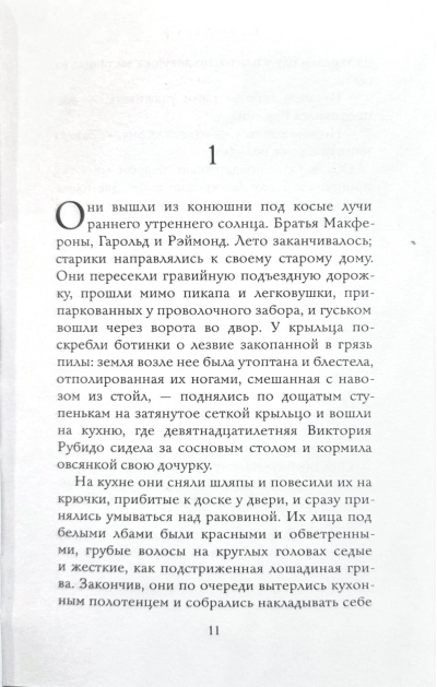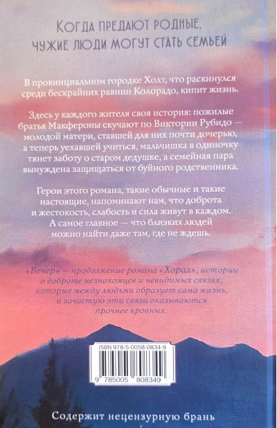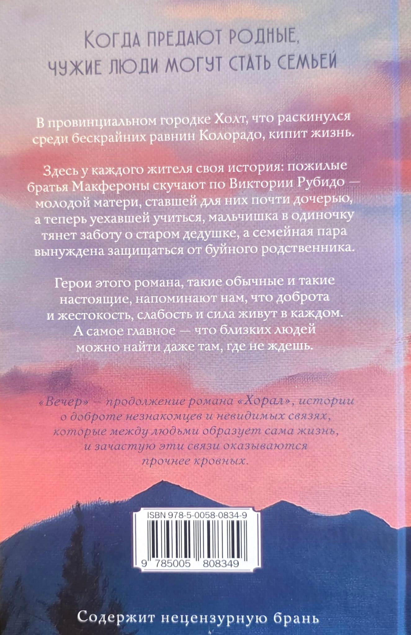 The provincial town of Holt, nestled amid the vast plains of Colorado, is bustling with life. Every resident has their own story: the elderly McPheron brothers miss Victoria Rubideaux, their young mother, who became almost like a daughter to them and has now left for college; a boy single-handedly cares for his elderly grandfather; and a married couple is forced to defend themselves against a violent relative.