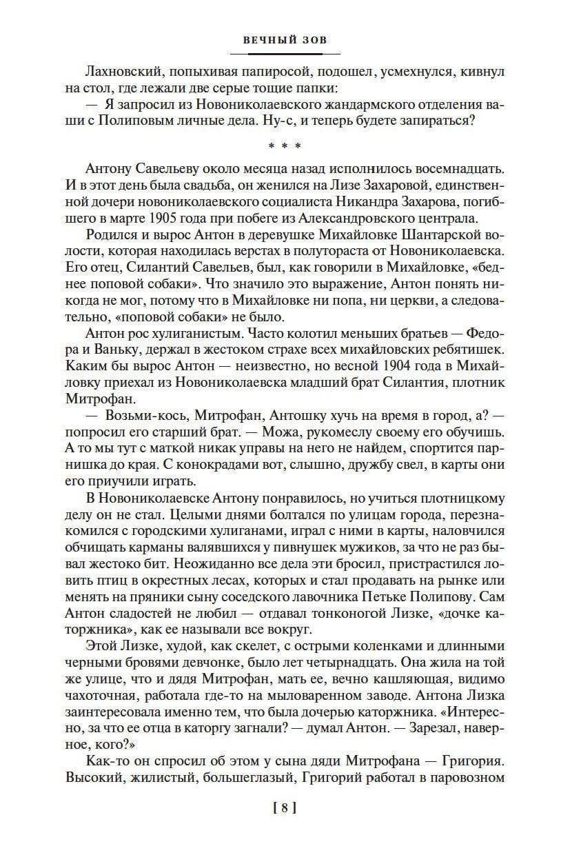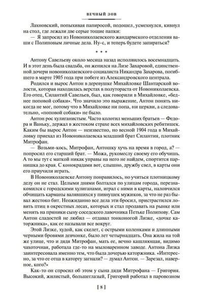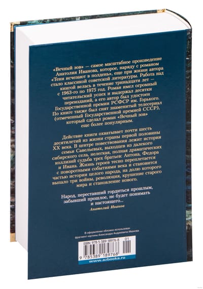 "Eternal Call" - the most ambitious work of Anatoly Ivanov, on which the writer worked for thirteen years - from 1963 to 1975. Soon after the release of the book, which was a huge reader success, the novel was filmed and the famous television series. The novel covers almost six decades of life in the country in the first half of the twentieth century. At the center of the narrative is the story of the Saveliev family, natives of a remote Siberian village, not easy, full of dramatic collisions fate of three brothers: Anton, Fyodor and Ivan. The lives of the heroes are closely intertwined with the turning events of the century and become part of the history of the whole nation, which had three wars, the revolution, the collapse of the old world and the formation of a new one.
