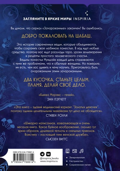 This is the story of modern witches who unite to save their beloved estate. Any means are used, so you will find Tarot layouts, potion lessons and recipes for simple human happiness.