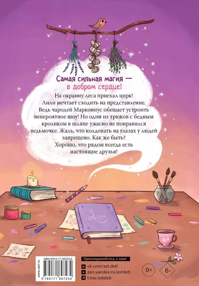 A circus has come to the edge of the forest! Lily dreams of going to the show. After all, she has never seen people so close. Plus, the magician Marconius promises to put on an incredible show! But one of the tricks with a poor rabbit in a hat did not please the witch. Too bad it's forbidden to perform witchcraft in front of people. What to do? Good thing there are always real friends around!
