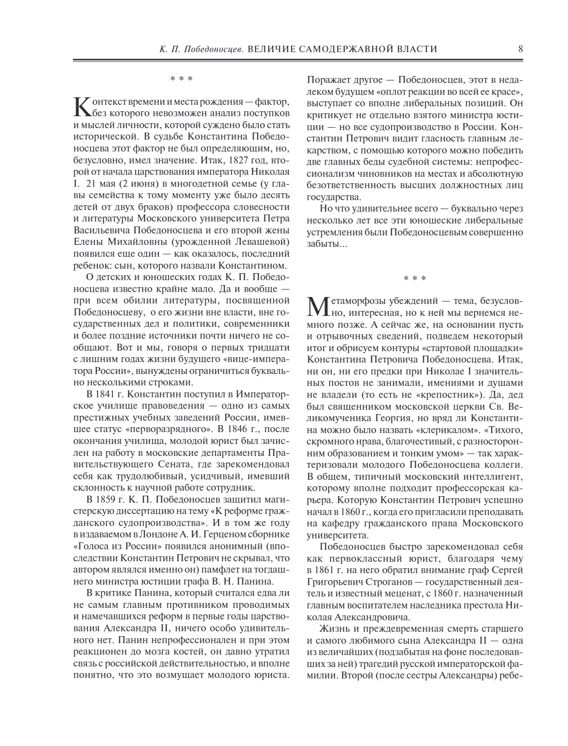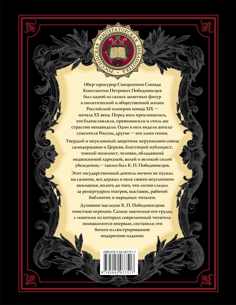 The intellectual heritage of Konstantin Pobedonostsev is truly huge. His most striking works, some of which the modern reader will get acquainted with for the first time, made this gift edition. The book is accompanied by a rich illustrative material – it will reveal the presented era with documentary accuracy not only in the words of its main characters, but also in visible, often forever lost images.
