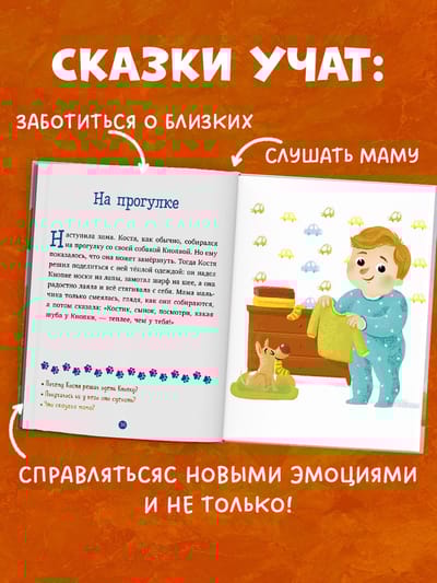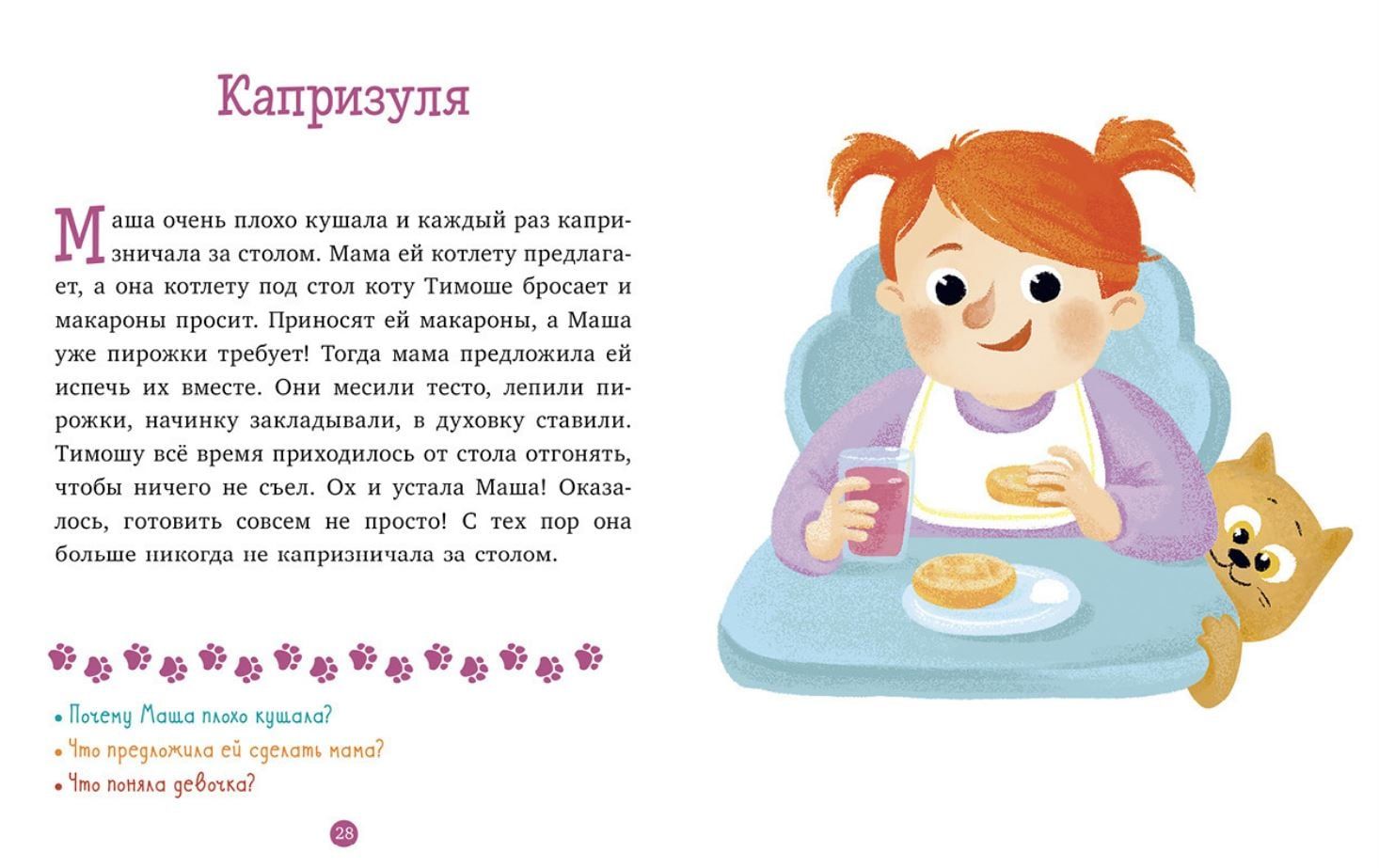 Each fairy tale is a situation that any child can get into: Masha was capricious at the table until she tried to cook dinner herself and realized how difficult it was. Eva did not like to clean her room, and because of this, her favorite teddy bear got lost. But it’s not only children who become the heroes of these stories: bunnies, kittens, piglets and frogs also often play pranks and get into various adventures.