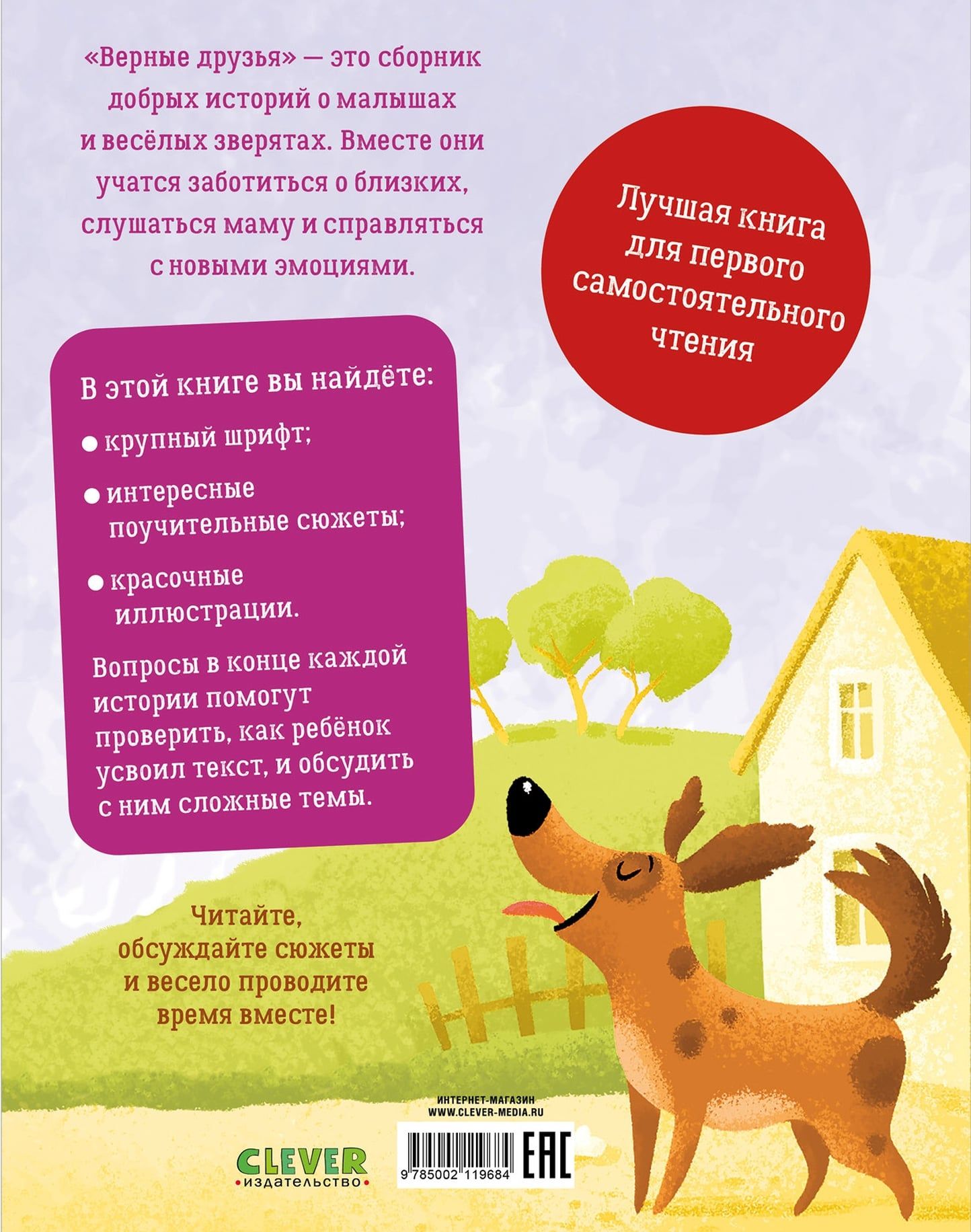 "True Friends" is 31 kind fairy tales for family and first independent reading of a child. Thanks to the book's heroes, your child will learn to cope with new emotions, obey mom and take care of loved ones. And the questions at the end of each fairy tale will help parents check how the child has learned the text and discuss difficult topics with him.