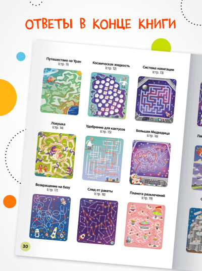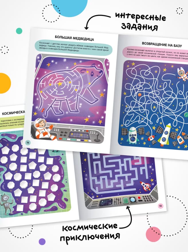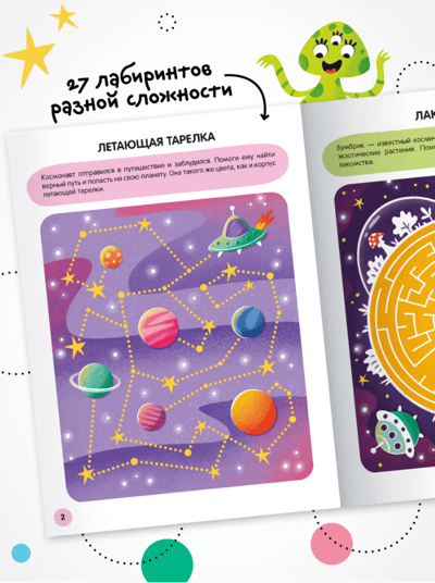 The book "Space" series "Merry Labyrinths" is an excellent choice for young lovers of walkers and tramps. In the book you will find 27 mazes of different types and difficulty levels with answers. The child will be able to ride the rover, fix the rocket, avoid meeting with space pirates and much more. And labyrinths help the development of fine motor skills, attentiveness and thinking.