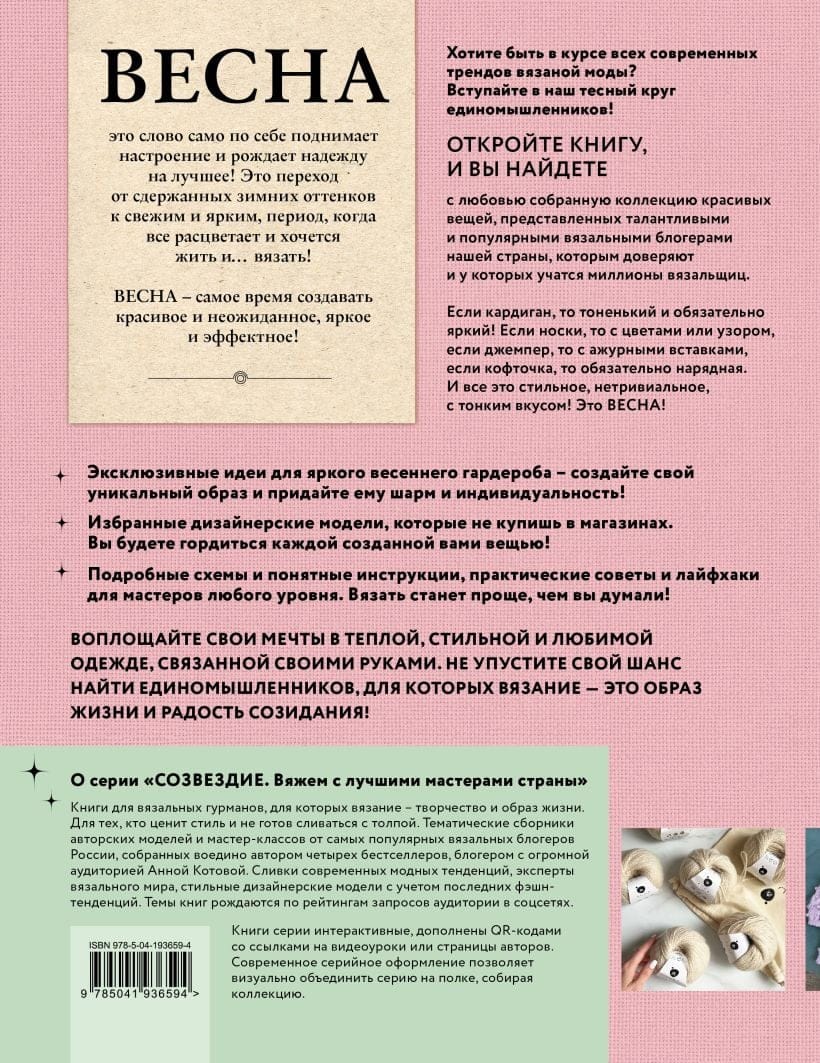 In spring, when everything starts to revive and blossom, you want renewal, freshness, new ideas and, of course, knitting! And you don't want to scour the Internet looking for something to knit for yourself, your children, your husband.... In this book you will find beautiful and stylish projects for every taste, we guarantee you will want to knit them all! And you and your loved ones will get a fashionable, bright, non-trivial spring closet, in which it is so good to walk in a green park or sunny streets.