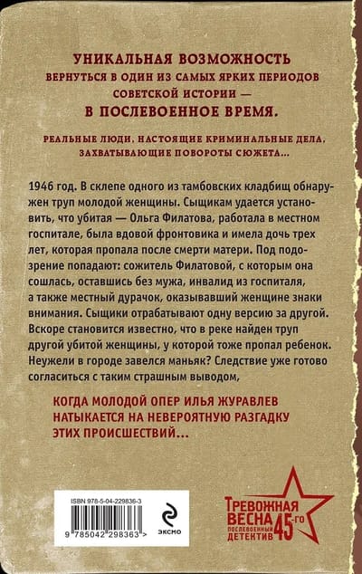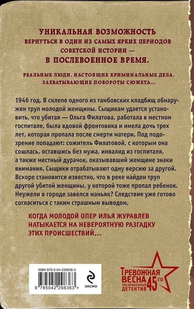 1946. The body of a young woman is discovered in a crypt in a Tambov cemetery. Detectives determine that the victim, Olga Filatova, worked at a local hospital, was the widow of a war veteran, and had a three-year-old daughter who disappeared after her mother's death. Suspects include Filatova's partner, with whom she had taken up with after losing her husband, a disabled man from the hospital, and a local idiot who had been paying attention to the woman. The detectives pursue one lead after another. Soon, they learn that the body of another murdered woman, also with a missing child, has been found in the river. Could a serial killer be lurking in the city? The investigation is about to accept this horrific conclusion when young detective Ilya Zhuravlev stumbles upon an incredible solution to these incidents...