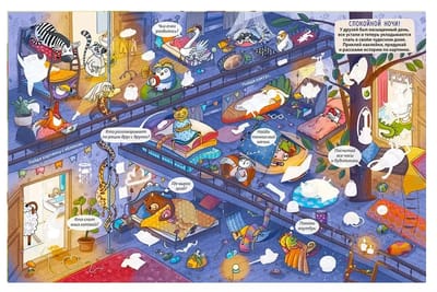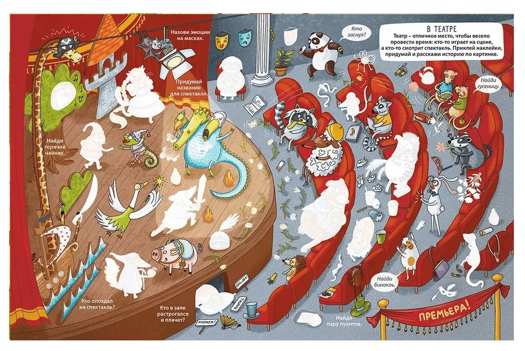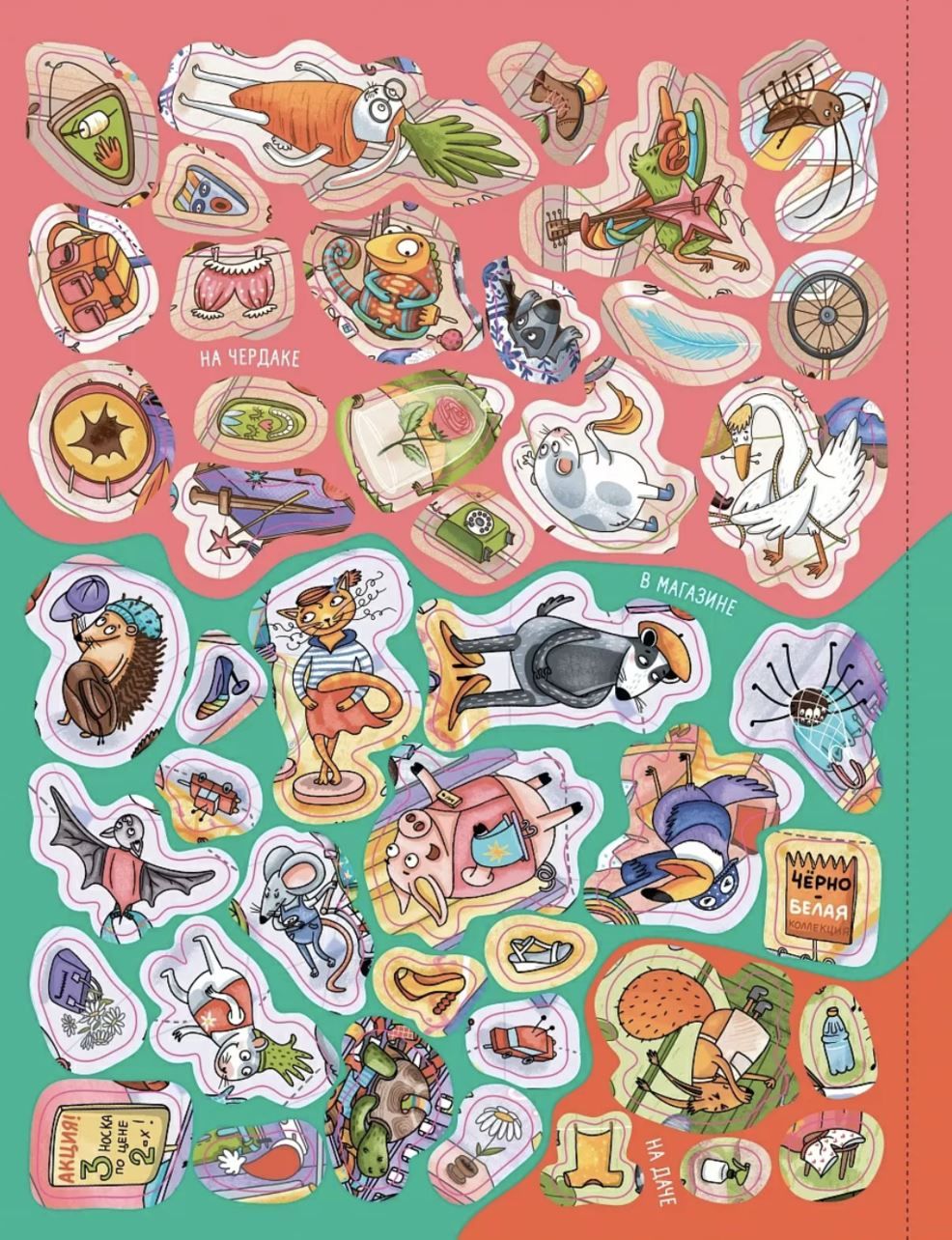 You hold in your hands not just a book, but a real Wimmelbook with stickers. Thanks to bright illustrations and entertaining tasks, this book will captivate your child for a long time and will not let him miss a minute.