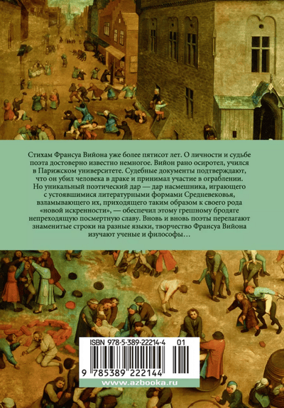 The poems of François Villon (1431/32 - after 1463) are over five hundred years old. Not much is reliably known about the poet's personality and fate. Villon was orphaned early, studied at the University of Paris. Court documents confirm that he killed a man in a fight and took part in a robbery. But a unique poetic gift - the gift of a mocker, playing with the established literary forms of the Middle Ages, breaking them, thus coming to a kind of "new sincerity" - provided this sinful vagabond of enduring posthumous fame. Time and again, poets translate the famous lines into different languages, the work of François Villon is studied by scientists and philosophers....