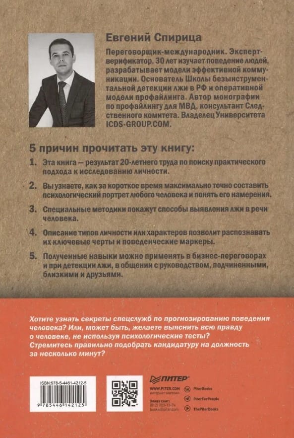 Do you want to learn the secrets of intelligence agencies on predicting human behavior? Or maybe you want to find out the whole truth about a person without using psychological tests? Are you trying to find the right candidate for a position in a few minutes? The author's method of operational psychodiagnostics will help you accurately and quickly evaluate a person in less than 2 minutes of communication - understand who is in front of you, what is his behavioral portrait, how he will react to certain situations. The method can be used to adapt to the interlocutor or opponent as accurately and quickly as possible, and, if necessary, even maladjust him (for example, in the case of a tough conversation, difficult negotiations or communication with a criminal or terrorists).