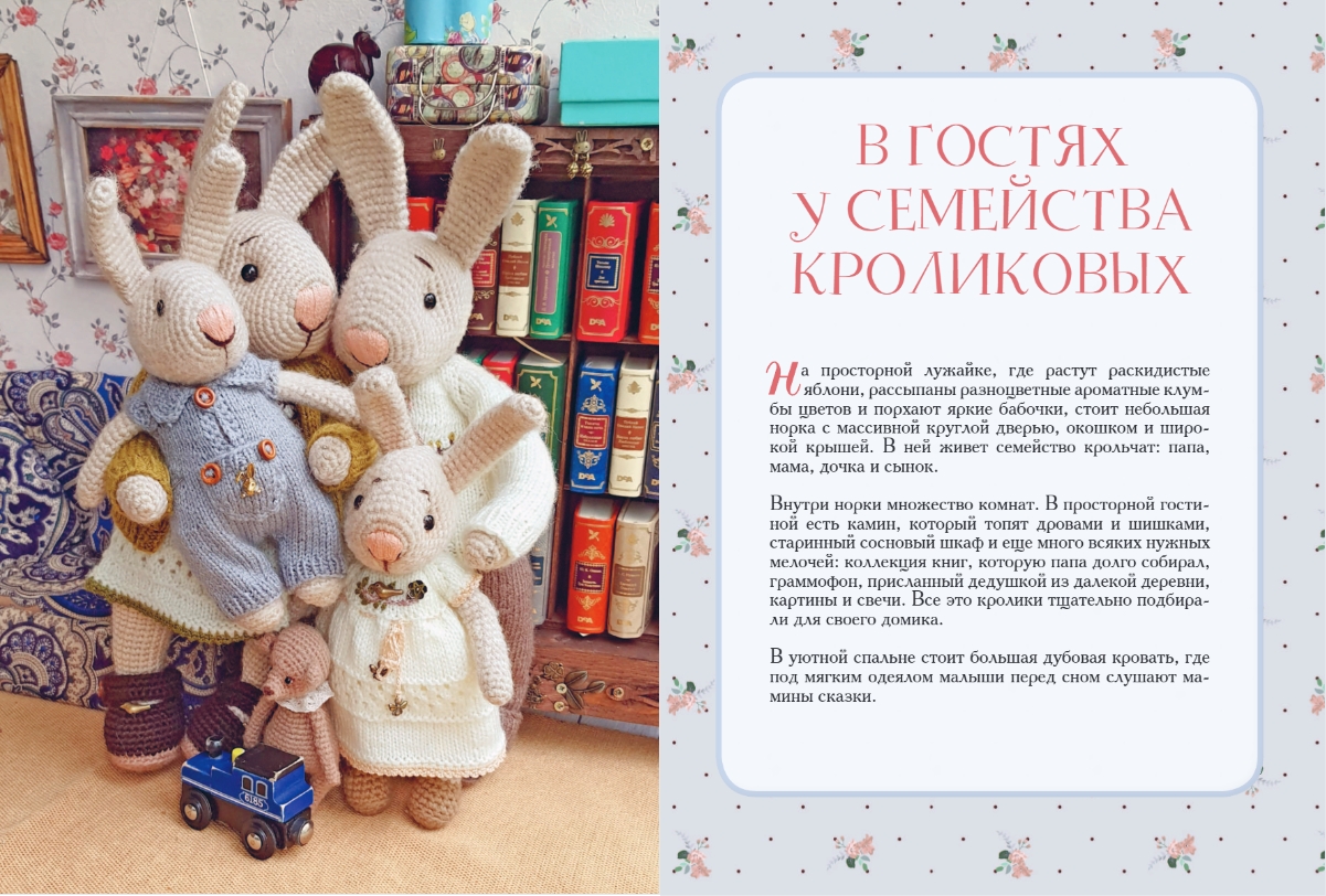 Sweet, touching, funny, and warm, these charming bunnies—Mom, Dad, and two little bunnies—are hand-knitted from natural yarn and come to life on the pages of this book by the wonderful artist Dina Zvereva. She created not only the bunnies themselves, but also an entire small, cozy world into which they invite you to visit.