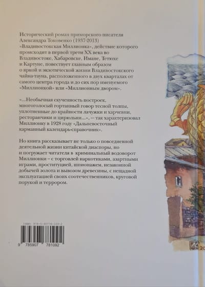 The historical novel by Primorsky writer Alexander Tokovenko (1937-2013) “Vladivostok Millionka”, the action of which takes place in the first third of the 20th century in Vladivostok, Khabarovsk, Iman, Tetyukh and Kartun, tells mainly about the bright and exotic life of Vladivostok Chinatown, located two blocks from the very center of the city and still called “Millionka” or “Million Yard”. “…The unusual crowding of buildings, the polyphonic guttural talk of a tight crowd, the extremely compact huts and taverns, restaurants and barber shops…”, is how the “Far Eastern Pocket Calendar-Reference” characterized Millionka in 1928. But the book tells not only about the daily active life of the Chinese diaspora, but also immerses the reader in the criminal whirlpool of Millionka - with drug trafficking, gambling, prostitution, espionage, illegal gold mining and timber export, with the merciless exploitation of their compatriots, mutual responsibility and terror.