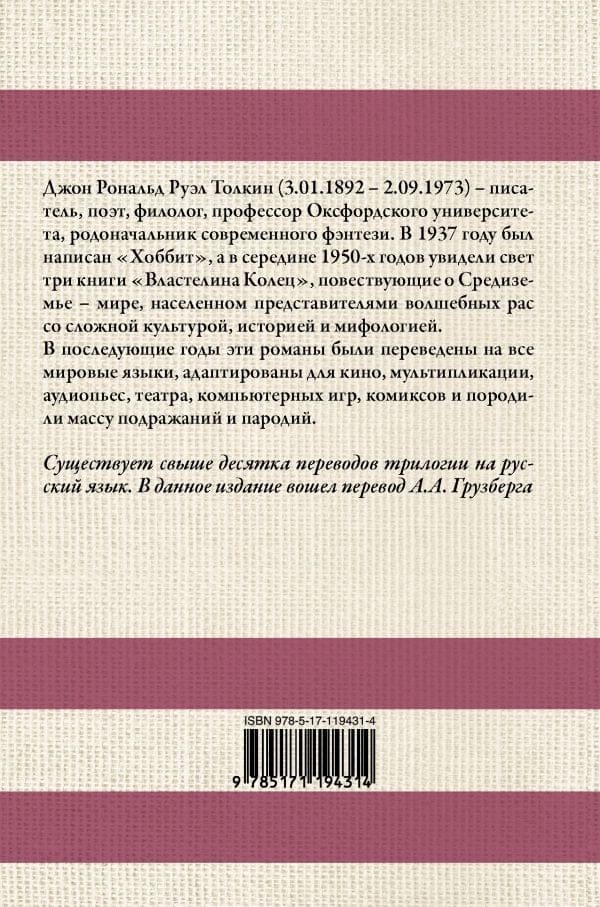 There are over a dozen translations of the trilogy into Russian. This edition includes the translation by A. Gruzberg.