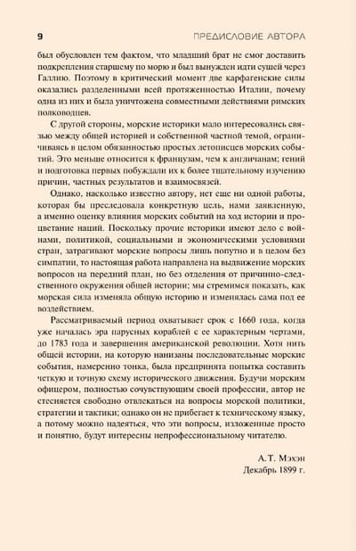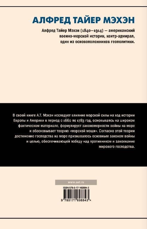 In his book, A.T. Mahan examines the influence of sea power on the course of history of Europe and America in the period from 1660 to 1783, based on extensive factual material, formulates the laws of war at sea and substantiates the theory of "sea power". According to this theory, achieving supremacy at sea was recognized as the main law of war and the goal ensuring victory over the enemy and the conquest of world domination.