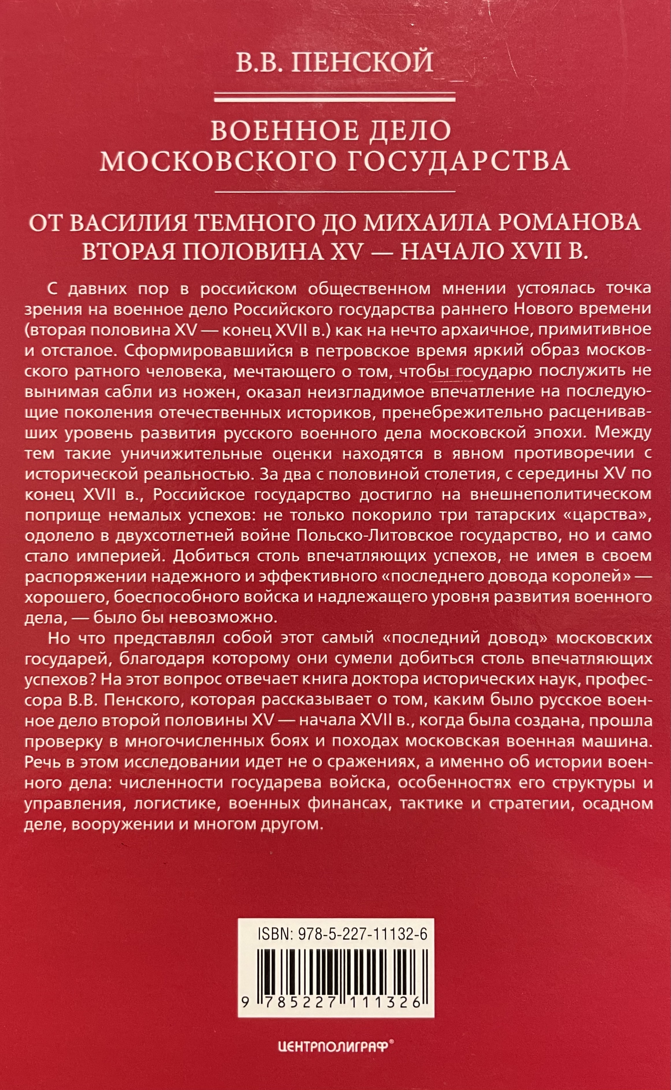 But what was this "last resort" of the Muscovite rulers that enabled them to achieve such impressive successes? This question is answered in a book by Doctor of Historical Sciences and Professor V.V. Pensky, which explores Russian military affairs from the second half of the 15th to the early 17th centuries, when the Muscovite military machine was created and tested in numerous battles and campaigns. This study focuses not on battles, but on the history of military affairs: the size of the sovereign's army, the specifics of its structure and command, logistics, military finances, tactics and strategy, siege warfare, weaponry, and much more.
