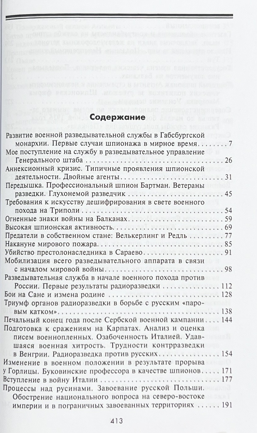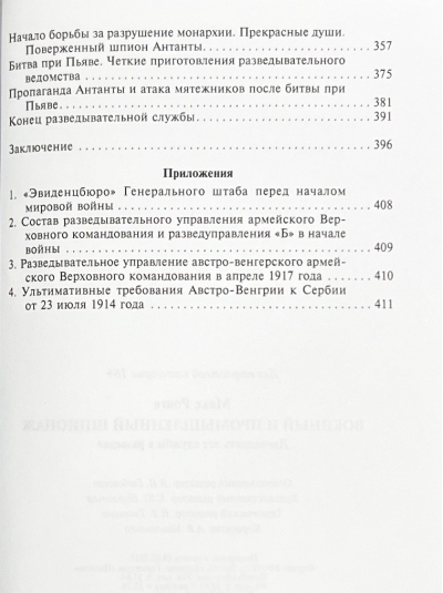 The memoirs of Max Ronge, an Austrian officer, the last head of the Intelligence Directorate of the Austro-Hungarian Army General Staff, a high-class professional intelligence officer, are a unique work on the history of international espionage. Using a huge amount of factual material, the author explains the goals and objectives of espionage, familiarizes with the theory and practice of espionage subversive activities of intelligence agencies, reveals their structure and the technology of their daily service. Along with the description and analysis of military and political events Ronge presents the most striking episodes of the Austrian counterintelligence, such as the exposure of Welkerling, Rödl and many others. Maps, charts, and photographs supplement and clarify the narrative.
