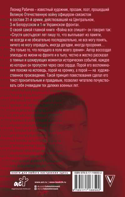 About his most important book "War will write off everything" he said: "Sixty years later I write what comes out of my memory, not always and not necessarily consistently, not everything I can understand, nothing I can justify, sometimes guesses, sometimes insights... This is only what came into my field of vision". The author recreated episodes of life at the front and in the rear, honestly and harshly told about the dark and shocking moments of historical events, each of which he missed through his heart. Sometimes his memoirs are like a confession, sometimes like a chronicle, and sometimes like a work of fiction. This principle of narration made his text poignant and truthful, allowing the reader to feel like an eyewitness of those distant war years.