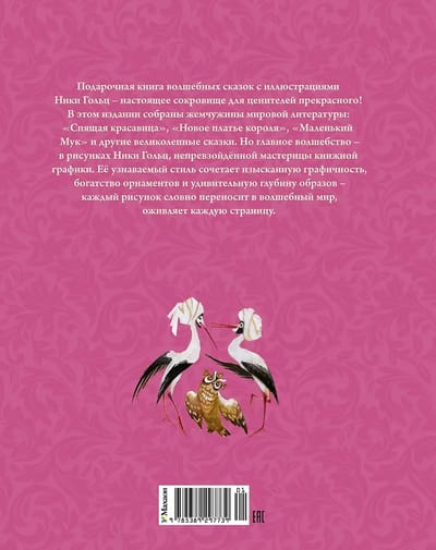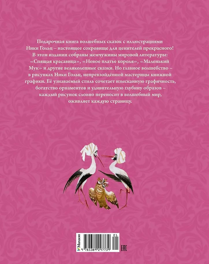 A gift book of magical fairy tales illustrated by Nika Golts is a true treasure for connoisseurs of beauty! This edition contains gems of world literature: "Sleeping Beauty," "The Emperor's New Clothes," "Little Muck," and other magnificent tales. But the real magic lies in the illustrations by Nika Golts, an unrivaled master of book illustration. Her recognizable style combines exquisite graphic quality, rich ornamentation, and astonishing depth of imagery—each drawing transports you to a magical world, bringing every page to life.