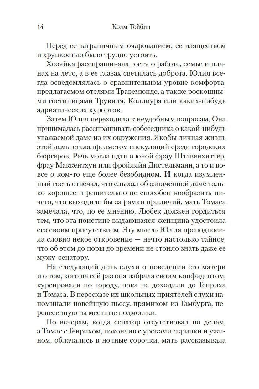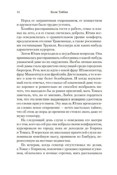 This is a family saga spanning more than half a century; it includes childhood in patriarchal Lübeck, youth in bohemian Munich, family happiness, impenetrable secrets of the inner world, and the First World War, and flight from the fascist dictatorship, and the Second World War, and the beginning of the Cold War...