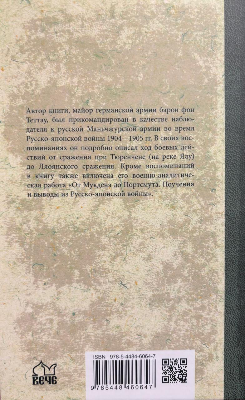 The book's author, German Army Major Baron von Tettau, was assigned as an observer to the Russian Manchurian Army during the Russo-Japanese War of 1904–1905. In his memoirs, he describes in detail the course of military operations from the Battle of Türenchen (on the Yalu River) to the Battle of Liaoyang. In addition to his memoirs, the book also includes his military analysis, "From Mukden to Portsmouth: Lessons and Conclusions from the Russo-Japanese War."