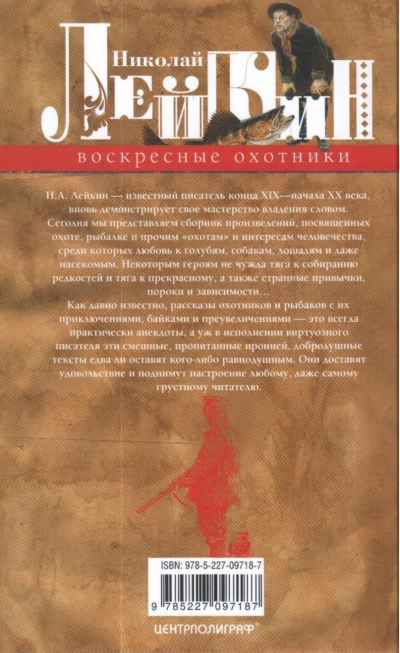 N.A. Leikin, a renowned writer of the late 19th and early 20th centuries, once again demonstrates his mastery of words. Today we present a collection of works dedicated to hunting, fishing, and other pursuits and interests of humankind, including a love of pigeons, dogs, horses, and even insects. Some of the characters share a passion for collecting rarities and a love of beauty, as well as strange habits, vices, and addictions. It has long been known that stories of hunters and fishermen, with their adventures, anecdotes, and exaggerations, are almost always anecdotes, and when delivered by a virtuoso writer, these funny, ironic, and good-natured texts are sure to leave no one indifferent. They will delight and lift the spirits of even the most discouraged reader.