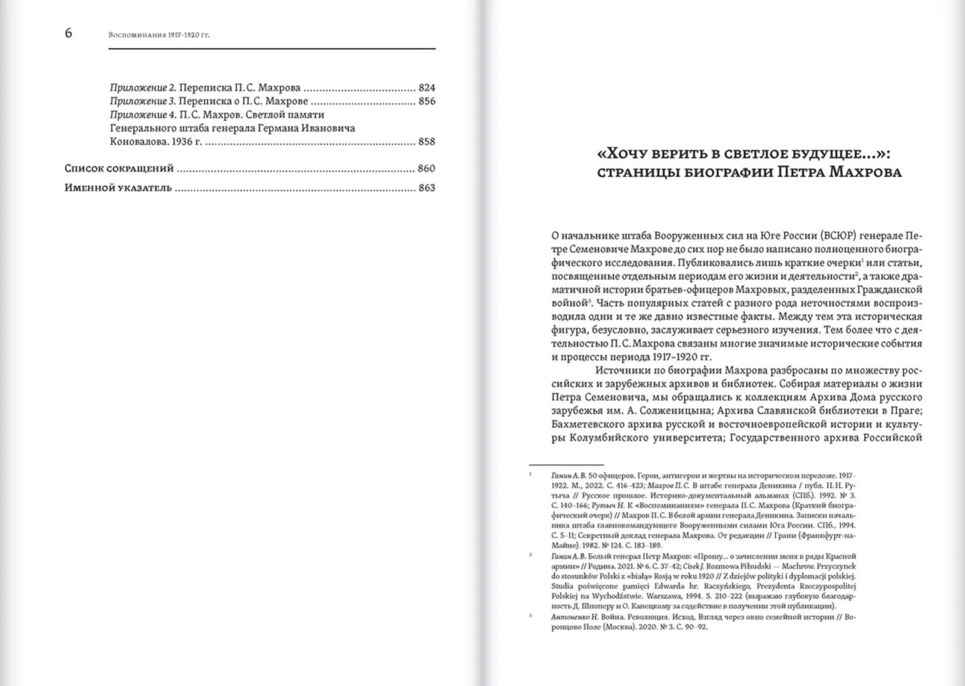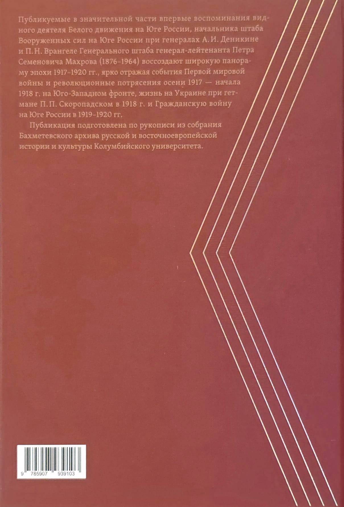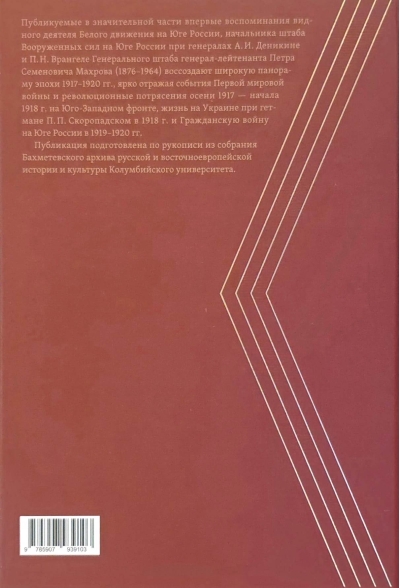 Published for the first time, these memoirs by Lieutenant General Pyotr Semyonovich Makhrov (1876–1964), a prominent figure in the White movement in southern Russia and Chief of Staff of the Armed Forces of the General Staff in southern Russia under Generals A.I. Denikin and P.N. Wrangel, provide a broad panorama of the 1917–1920 era, vividly reflecting the events of World War I and the revolutionary upheavals of the autumn of 1917 and early 1918 on the Southwestern Front, life in Ukraine under Hetman P.P. Skoropadsky in 1918, and the Civil War in southern Russia in 1919–1920.