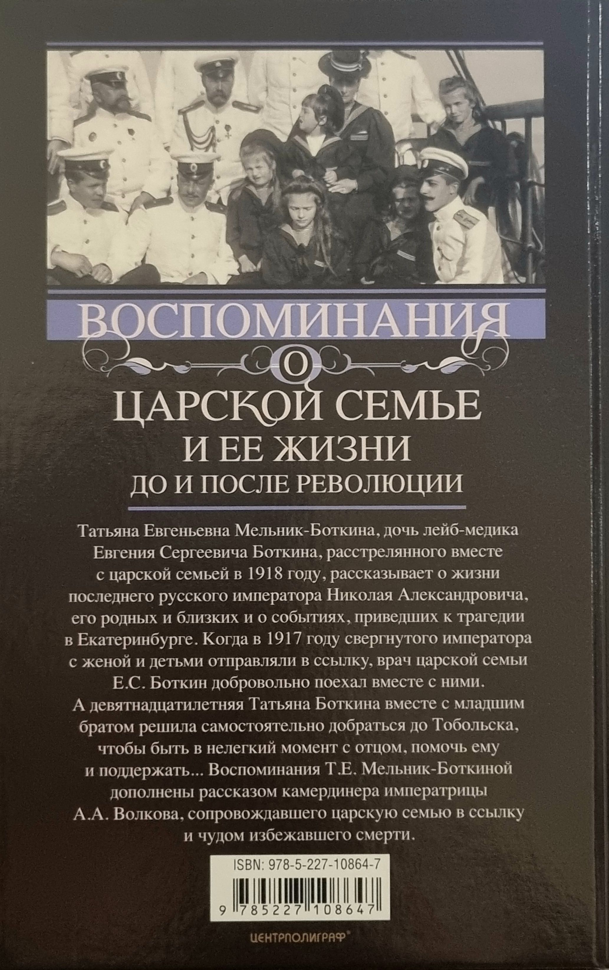 In her memoirs, Tatyana Melnik-Botkina describes her childhood, which took place in close proximity to the family of Nicholas II, then the events of the First World War and the exile of the royal family to Tobolsk.