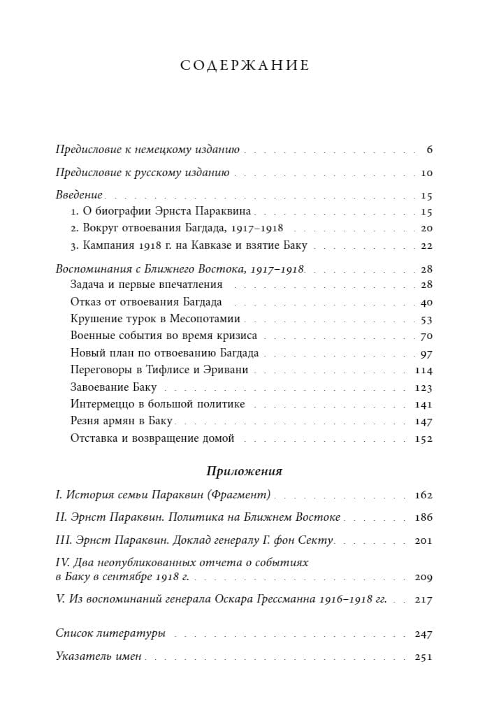 The history of the First World War is infinitely complex and confusing, so many of its facts and circumstances are still unknown even to leading experts. Memoirs of Ernst Parakvin (Paraken), an officer of the German General Staff, never before published either in the original or in translation, are a valuable testimony about the events in the Middle East and Transcaucasia, as well as about the last months of the Ottoman Empire and the tragic pages of the national-state division after the collapse of the Romanov power. The memoirs cover the years 1917-1918 - the time of Parakvin's participation in military campaigns in Mesopotamia and the Caucasus. The author of the memoirs, who paid for his promising career by condemning the killings of Armenians in Baku in September 1918, reflects on the dramatic political processes that unfolded on the peripheral platforms of the theater of the First World War.