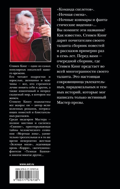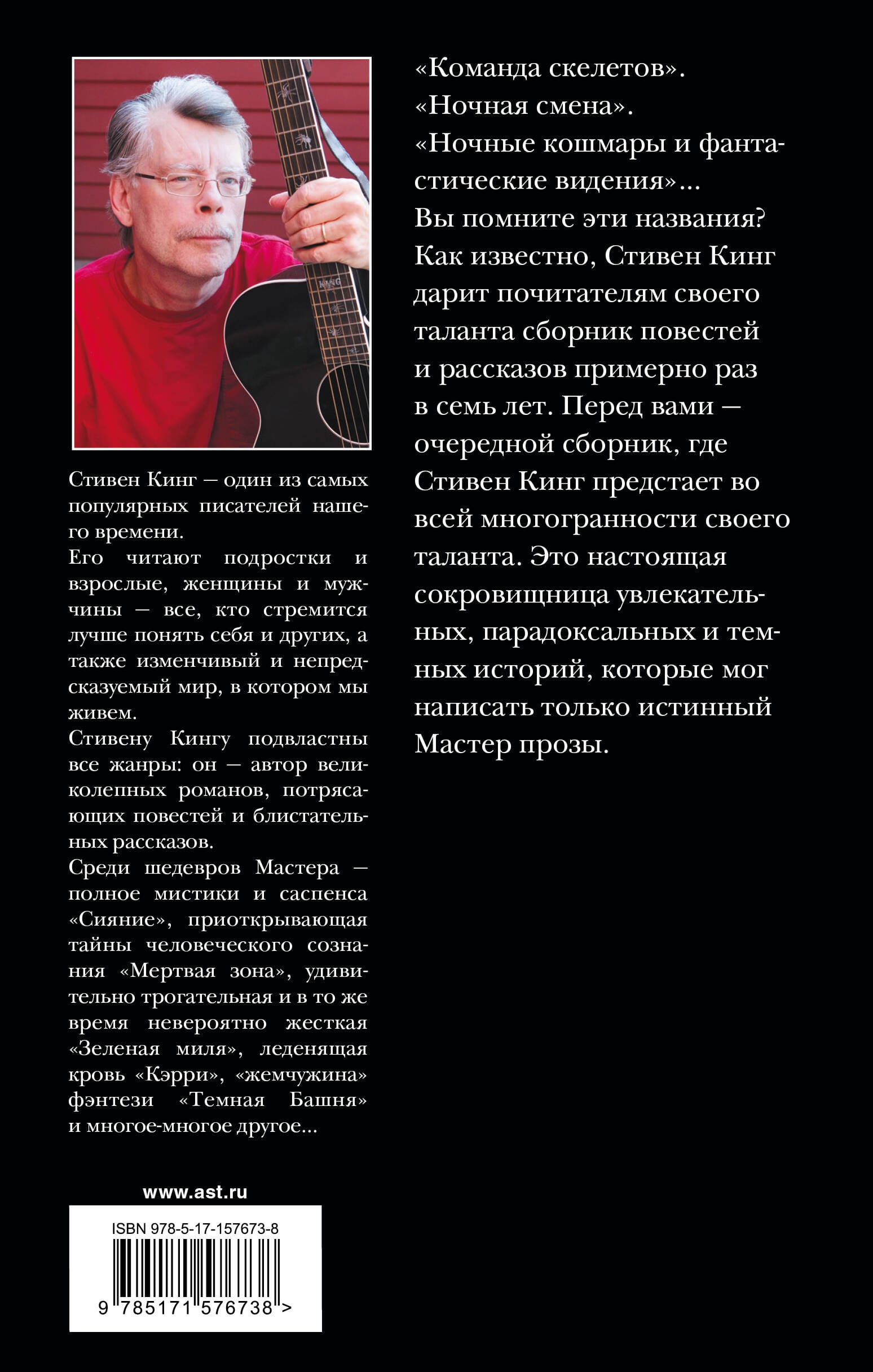 "Skeleton Crew." "Night Shift." "Nightmares and Fantastic Visions"... Do you remember these titles? As is well known, Stephen King gives his admirers a collection of stories and short stories approximately once every seven years. Before you is another collection, where Stephen King appears in all the versatility of his talent. This is a real treasure trove of fascinating, paradoxical and dark stories that only a true Master of Prose could write.