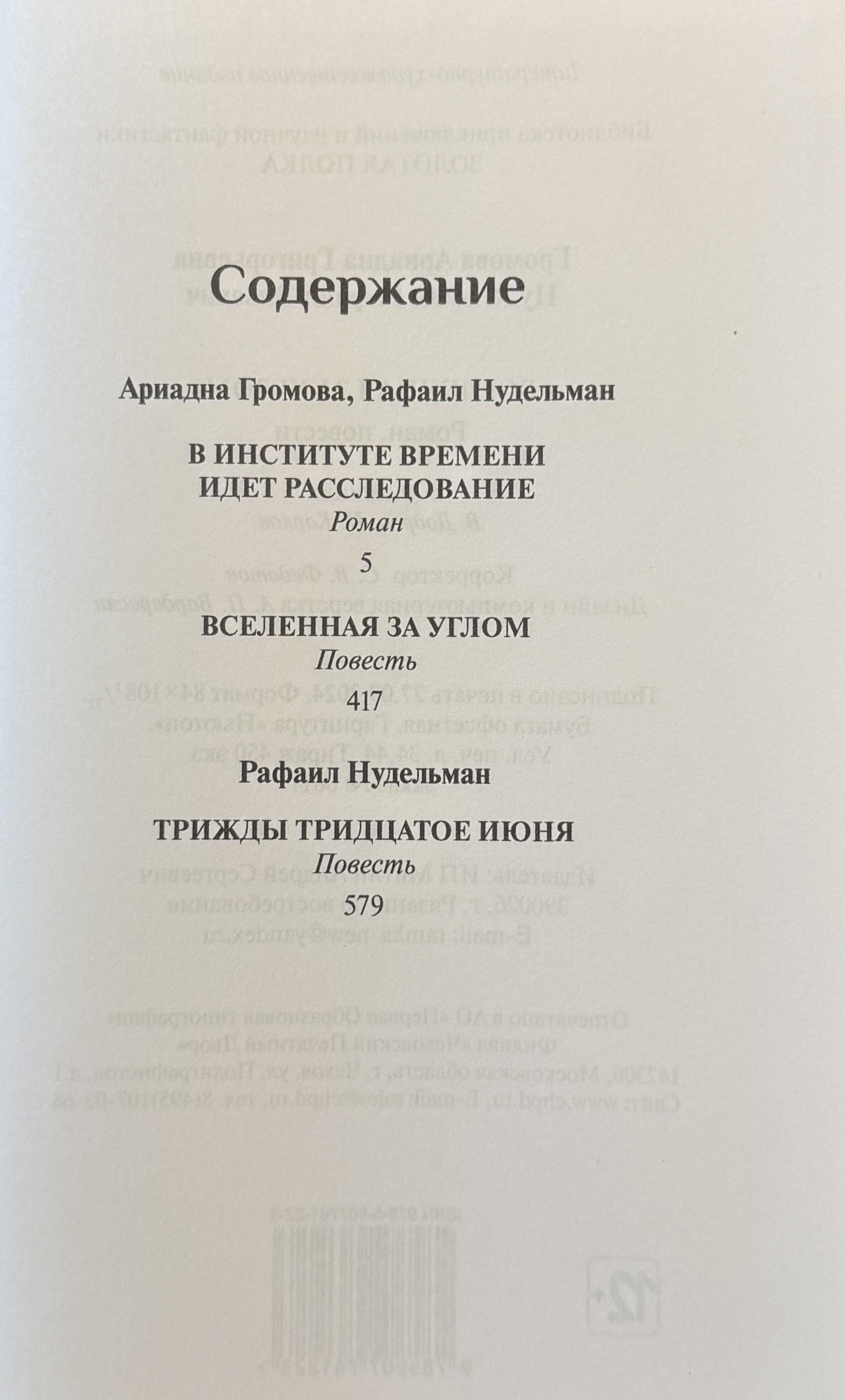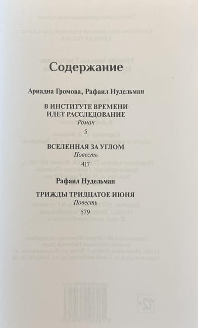The second volume of the collected works by one of the classics of Russian science fiction, Ariadna Gromova, includes works she co-wrote with Rafail Nudelman: "The Universe Around the Corner," "An Investigation is Underway at the Institute of Time," as well as R. Nudelman's novella "Three Thirties of June."