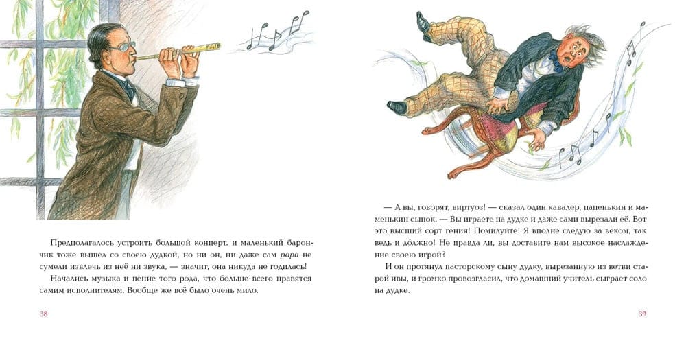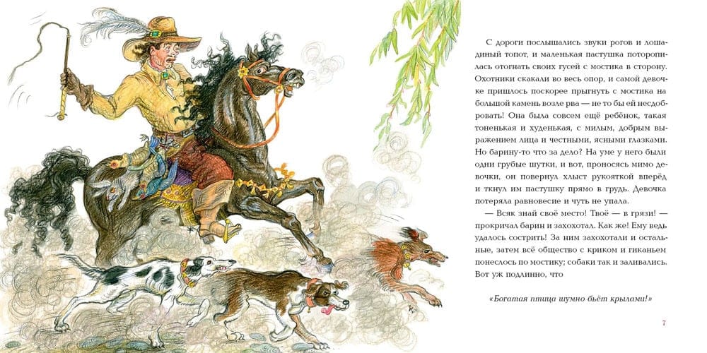 One day, a rich hunter driving over a bridge pushed a young shepherdess into the mud, shouting that everyone should know his place. Fortunately, the girl managed to catch hold of a willow branch, but broke it off. A young merchant who was passing by picked up the shepherdess and stuck the broken branch into the ground, wishing that it would make a good piper for the lords. The boxman became rich, bought the estate of the ruined baron and married the former shepherdess. Their offspring received a baronial title. Years passed, and after a hundred years, the baron's family almost forgot their ancestors. But one day at a ball at the manor house, a piper carved from the same willow branch played....