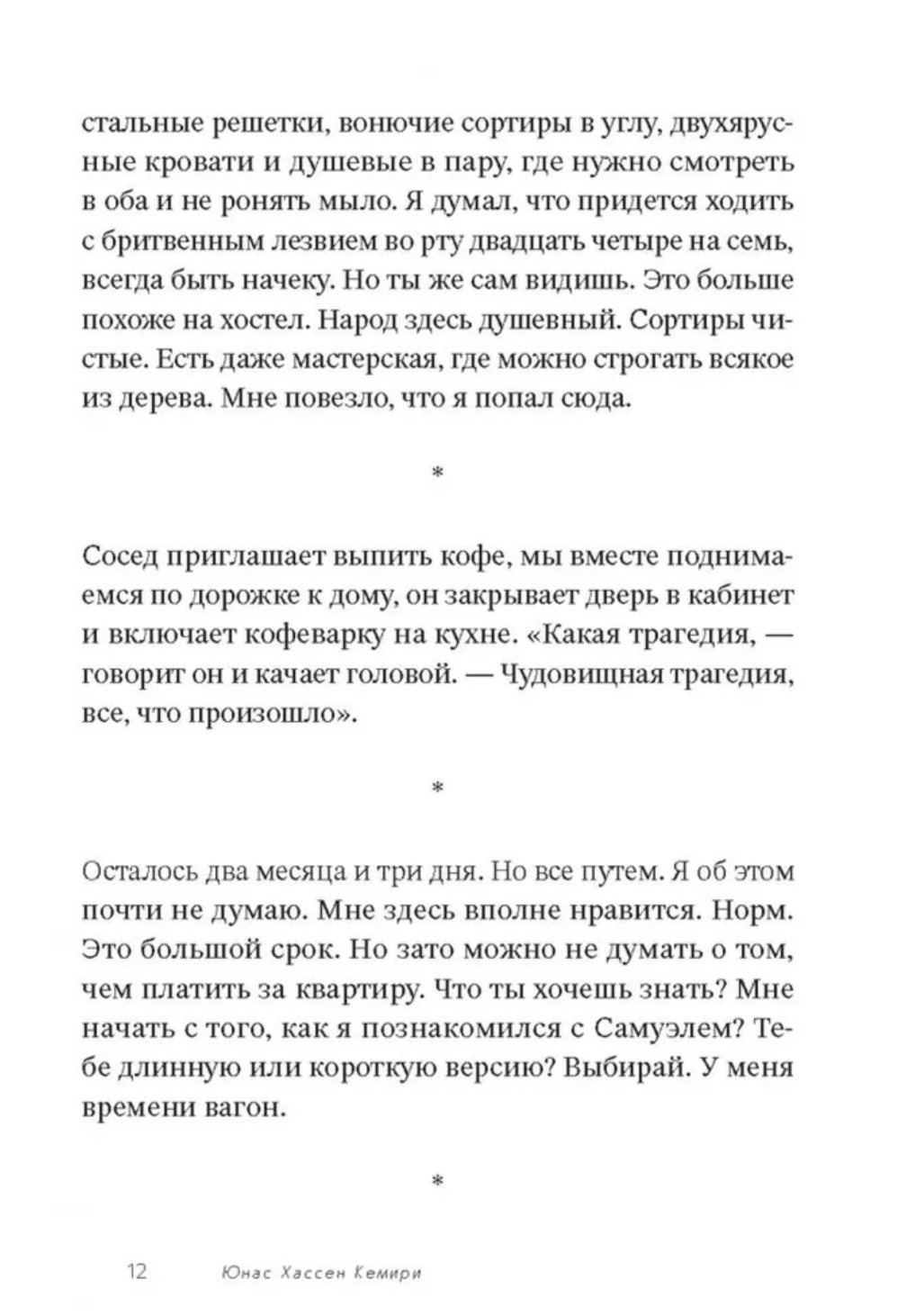A certain writer tries to recreate the last day of the life of Samuel, a young man who suddenly died (committed suicide?) in a car accident. In the stories of friends, his beloved girlfriend, relatives and neighbors, different facets of his personality emerge: a loving grandson, an unwilling bureaucrat, a loyal friend, a ridiculous poser, a man in love, ready to do anything for his girlfriend... What remains of all our fleeting memories? And what lies behind what we don't remember? This is a novel about love and friendship, betrayal and violence, grief from the loss of a loved one and loneliness, about the transience of time and the properties of our memory. It is published in Russian for the first time. "Jonas Hassen Kemiri has created the most quoted text in Sweden in recent times. It is believed that his article - an open letter to the Minister of Justice Beatrice Ask about the law, according to which the police, in order to combat the influx of illegal immigrants into the country, could check the documents of everyone, and especially, of course, people of non-local appearance - has been seen and read by approximately every user of Swedish Twitter. But this letter is read, of course, also because Kemiri is the most important Swedish non-Buckman today, the author of really complex psychological prose, who has collected all of Sweden's Natsbests and Big Books." - reviewed by Anastasia Zavozova in Esquire - 10 New Books for Summer You Can't Miss.