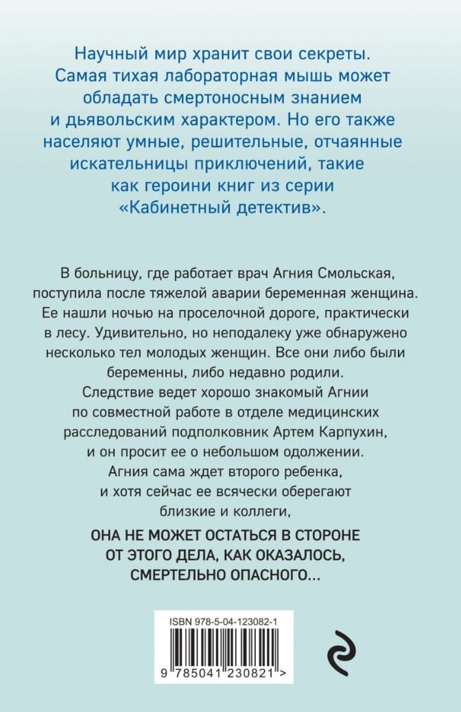 A pregnant woman was admitted to the hospital where doctor Agnia Smolskaya works after a serious accident. She was found at night on a country road, practically in the woods. Surprisingly, several bodies of young women had already been discovered nearby. All of them were either pregnant or had recently given birth. Lieutenant Colonel Artem Karpushin, a friend of Agnia's from their time together in the medical investigations department, is leading the investigation, and he asks her for a small favor. Agnia is expecting her second child, and although her family and colleagues are protecting her, she cannot stay away from this case, which, as it turns out, is deadly.