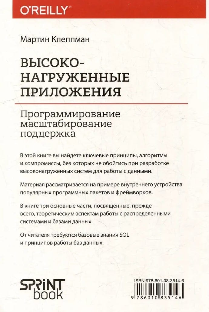 In this book, you will find key principles, algorithms and trade-offs that you can't do without when developing data-intensive systems. The material is examined by the example of the inner workings of popular software packages and frameworks. The book has three main parts, devoted primarily to theoretical aspects of working with distributed systems and databases. The reader is required to have a basic knowledge of SQL and database principles.
