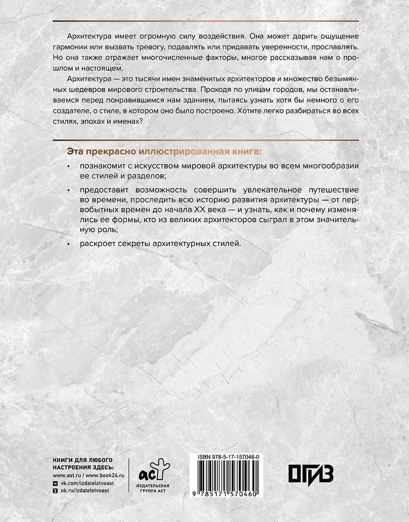 Architecture exerts enormous influence. It can inspire a sense of harmony or evoke anxiety, oppress or instill confidence, or glorify. But it also reflects numerous factors, telling us much about the past and the present. This beautifully illustrated publication will introduce the art of architecture in all its diverse main styles, fields, and disciplines. It will be especially interesting for those who would like to trace the entire history of architecture—from prehistoric times to the early 20th century—and understand how and why its forms have changed, as well as which great architects played a significant role in this process. The book also reveals the secrets behind the construction of the most famous architectural structures, offering a fresh perspective on world-renowned masterpieces.