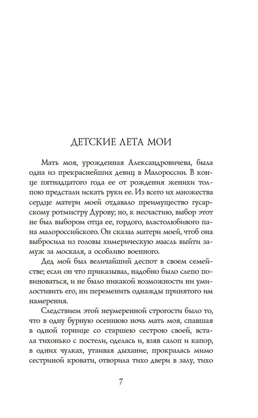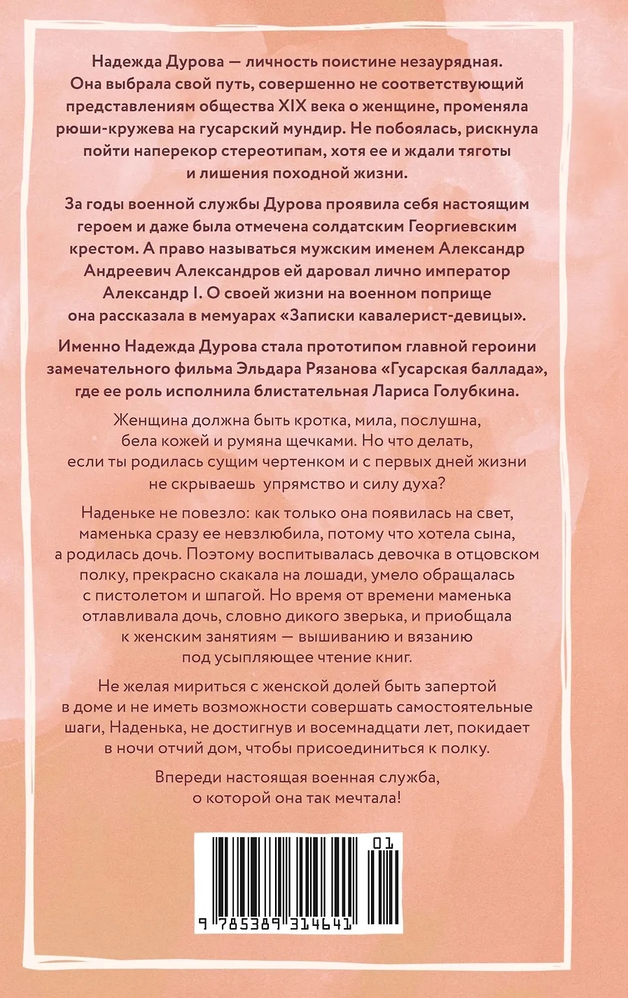 "Notes of a Cavalry Maiden" is not only the memoirs of a woman who lived a highly unusual life for a woman in the early 19th century—that of a soldier and cavalry officer—but also an honest book about how, by choosing your own path, following your heart rather than your parents' instructions or societal pressure, you can become happy and make your dreams come true.