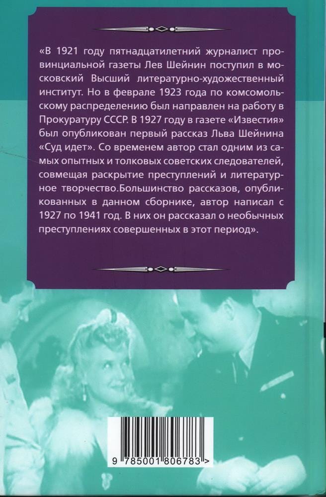 In 1921, fifteen-year-old journalist provincial newspaper Lev Sheynin entered the Moscow Higher Literary and Art Institute. But in February 1923 on the Komsomol distribution was sent to work in the Prosecutor's Office of the USSR. In 1927 in the newspaper "Izvestia" was published the first story of Lev Sheinin "The Court is coming." Over time, the author became one of the most experienced and savvy Soviet investigators, combining crime detection and literary creativity.Most of the stories published in this collection, the author wrote from 1927 to 1941. In them he told about unusual crimes committed during this period