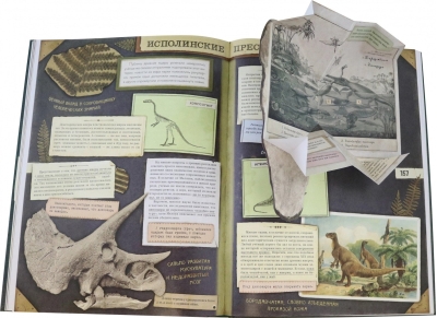 The format of the interactive "Around the Book" series allows for individual spreads of the publication to feature not only the gripping novel about the adventures of four brave men but also detailed cultural and historical commentary, maps, diagrams, drawings, and photographs. The history of paleontology, scientific discoveries at the turn of the century, the hobbies of wealthy Britons, the flora, fauna, and ethnography of the Amazon, scientific forgeries and misconceptions—a veritable encyclopedia of England was published on the eve of the First World War. The text itself contains surprises: drawings and notes from that very Maple-White album. The novel is illustrated with strips in a bright yet elegant color scheme, reminiscent of contemporary graphic design.