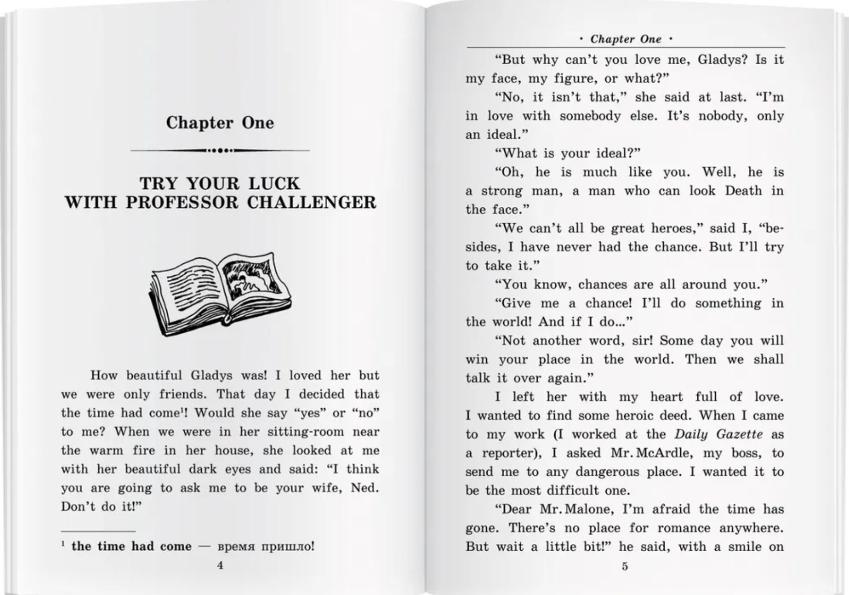 This book introduces readers to the works of the renowned English writer Arthur Conan Doyle. Within its pages, you'll meet familiar characters—Professor Challenger and his crew—learn where to encounter real dinosaurs, and follow the unraveling of mysterious crimes. The texts of the works—"The Lost World" and the Sherlock Holmes stories—are adapted for the language proficiency of students in grades 5 and 6. The book includes commentary and exercises.