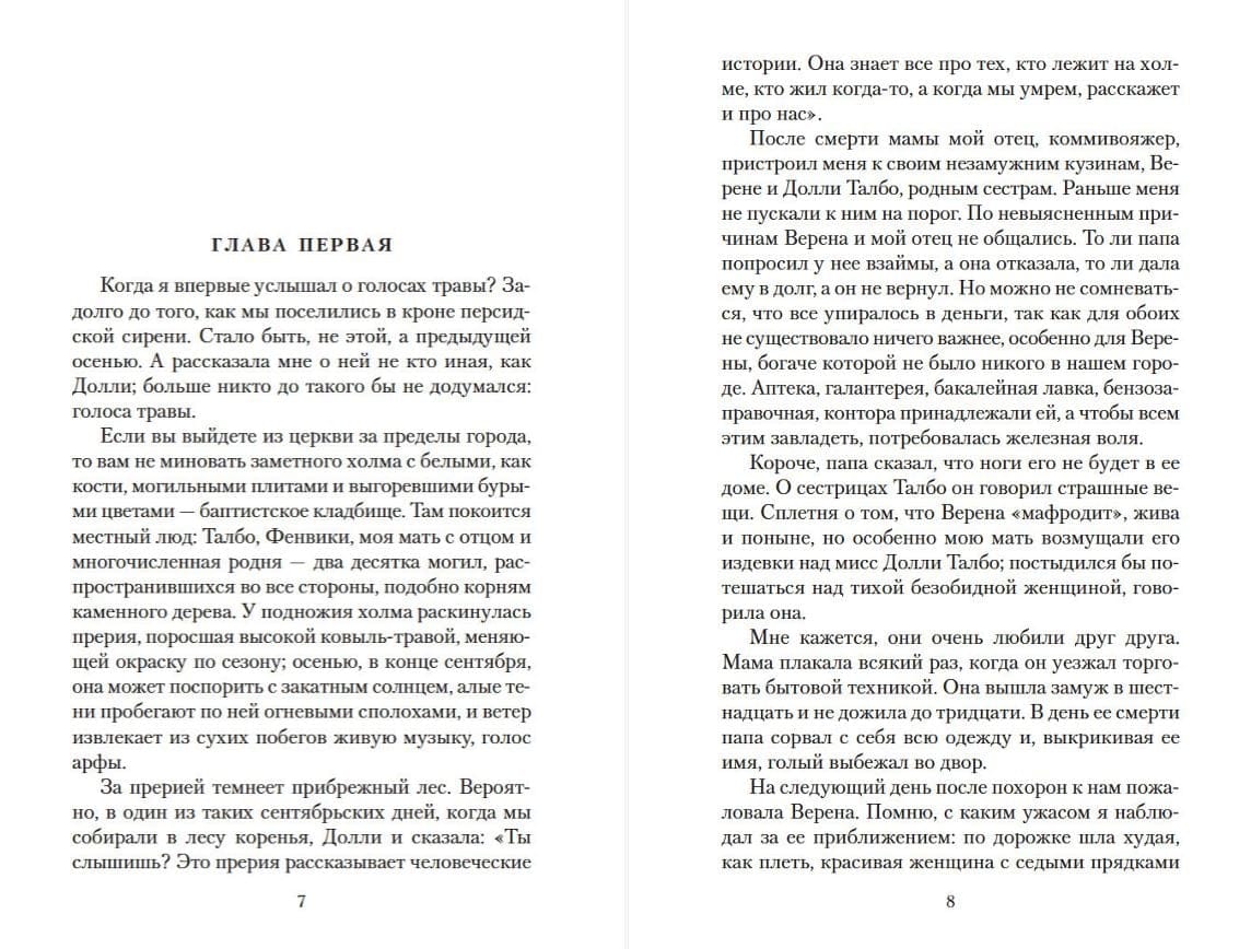 Truman Capote, the author of such bestsellers as In Cold Blood, Summer Cruise, Other Voices, Other Rooms and Music for Chameleons, is one of the greatest American writers of the 20th century. The reader is offered two of his classic stories: the lyrical Voices in the Grass, published in a new translation, as well as Capote's most famous work, made famous by the 1961 film adaptation starring Audrey Hepburn, who played the main character of the story, Holly Golightly, one of the most striking and unusual women in American literature. Eccentric, full of life, Holly is drawn to the world of rich people, sparkling with the bright lights of diamond necklaces. Guided in her actions only by the voice of her heart, combining childish naivety with the enchanting charm of a real woman, she seems to embody the very essence of New York - a city where dreams lie at arm's length, fenced off by the shiny glass of captivating shop windows.
