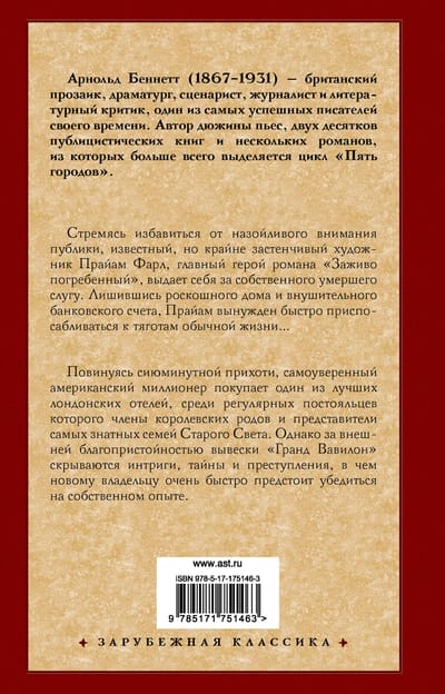 Seeking to escape the public's attention, the renowned but extremely shy artist Priam Farll, the protagonist of the novel "Buried Alive," disguises himself as his own deceased servant. Deprived of his luxurious home and impressive bank account, Priam is forced to quickly adapt to the hardships of ordinary life...