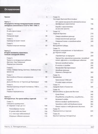 Based on available sources, it tells about the active actions of the aviation of the United States and its allies against the Soviet Union in that difficult period. Countering this, the servicemen of the Air Force and Air Defense of the USSR, Frontier Aviation were ready to stop the enemy at any cost, including their own lives. In addition, the details of incidents between the allies in the anti-Hitler coalition, which led to the use of weapons against each other in the early 1940s, and then about the difficult situation in the second half of the 1940s-1950s practically on all the borders of the USSR due to numerous reconnaissance and sabotage violations of the border almost along the entire perimeter of the territory of our country. The greatest number of border incidents occurred in the 1950s, when, in order to sharply intensify intelligence activities, the USSR's adversaries began to develop and use specialized equipment: reconnaissance planes from the Shuting Star to the U-2, balloon jumpers, automatic drifting balloons, and much more. Active throwing of parachutist saboteurs into the territory of the USSR continued. All this led to balancing the world on the brink of a hot war and, naturally, did not do without casualties on both sides. The narrative is divided into chapters by decades in chronological order and covers the period from the 1940s to the end of the 1950s. Each chapter is preceded by a brief characterization of the socio-political situation and the most important events in the USSR and the world. The second part of the dilogy will be devoted to the period 1961-1991. The book contains more than 430 photo illustrations, many of which are unique and published for the first time. It is intended for a wide range of readers.