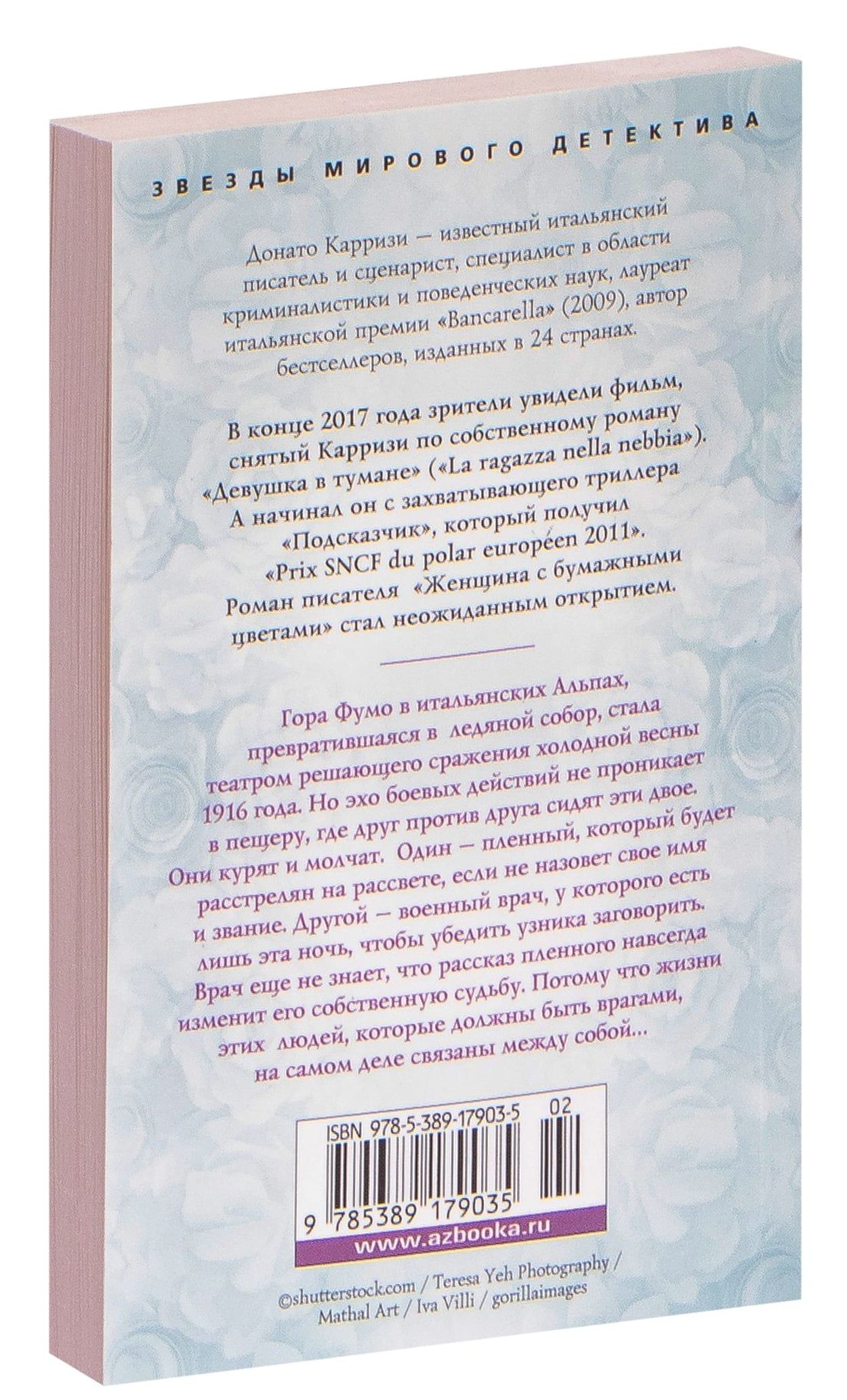 The novel "The Woman with Paper Flowers" by Donato Carrisi, the idol of European detective lovers, was an unexpected discovery. Mount Fumo in the Italian Alps, turned into an icy cathedral, became the theater of the decisive battle of the cold spring of 1916. But the echoes of the fighting do not penetrate the cave where these two men sit opposite each other. They are smoking and silent. One is a prisoner who will be shot at dawn if he does not give his name and rank. The other is a military doctor who has only this night to convince the prisoner to talk. The doctor does not yet know that the prisoner's story will change his own fate forever. Because the lives of these men, who should be enemies, are actually linked....