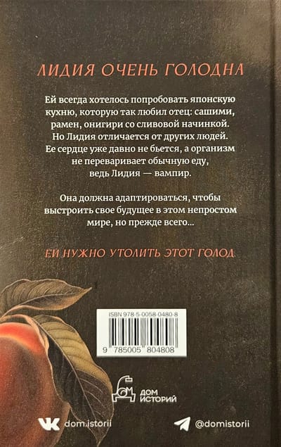 Lydia is very hungry. She always wanted to try the Japanese cuisine that her father loved so much: sashimi, ramen, onigiri with plum filling. But Lydia is different from other people. Her heart has long been beating, and the body does not digest normal food, because Lydia is a vampire.
